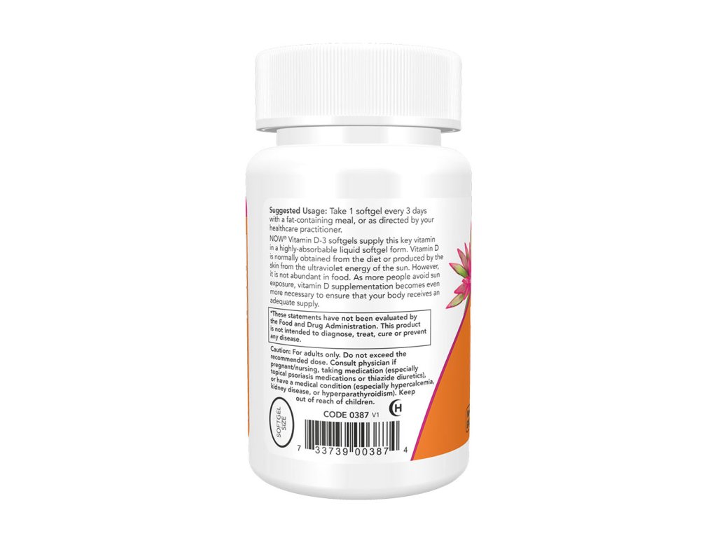 NOW® Vitamin D-3 softgely dodávají tento klíčový vitamin ve vysoce vstřebatelné tekuté softgelové formě. Vitamin D se obvykle získává ze stravy nebo se vytváří v kůži z ultrafialové energie slunečního záření. V potravinách však není hojně zastoupen. Vzhledem k tomu, že se stále více lidí vyhýbá pobytu na slunci, je doplňování vitaminu D ještě nezbytnější, aby se zajistil jeho dostatečný přísun do těla.