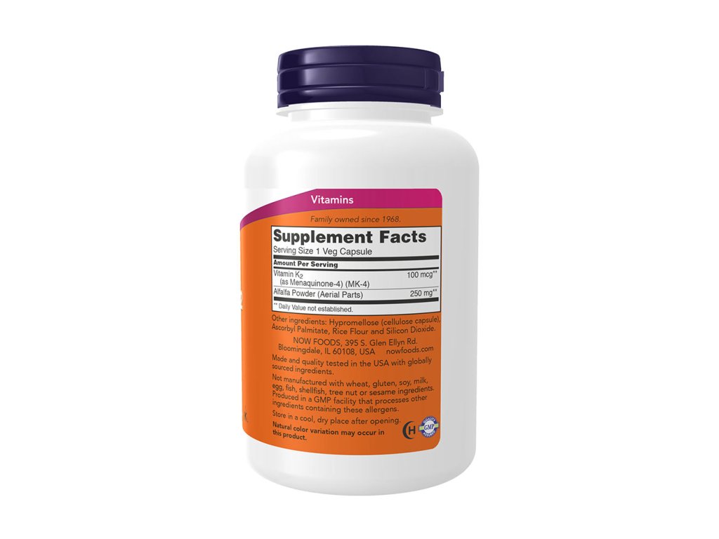 Now Foods Vitamín K2 100 mcg + Vojtěška 250 mg 250 veg kapslí