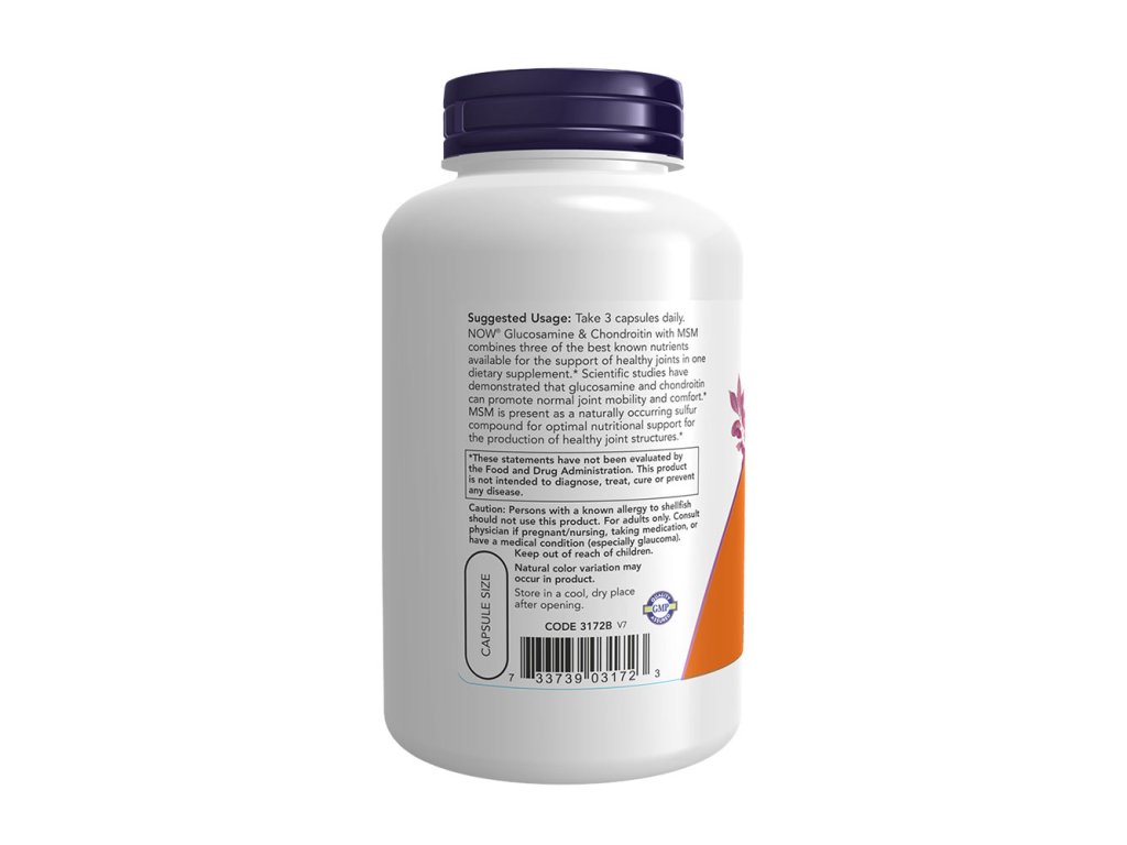 NOW® Glukosamin a chondroitin s MSM kombinuje tři nejznámější dostupné živiny pro podporu zdravých kloubů v jednom doplňku stravy. Vědecké studie prokázaly, že glukosamin a chondroitin mohou podpořit normální pohyblivost a pohodlí kloubů