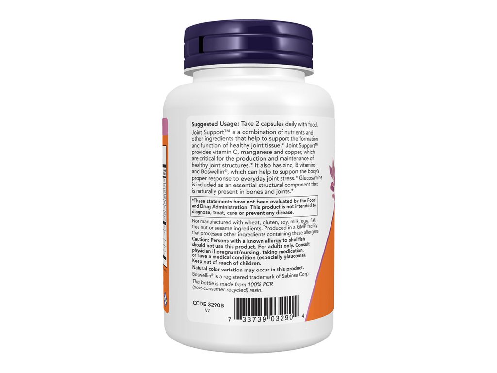 Joint Support™ je kombinací živin a dalších složek, které pomáhají podporovat tvorbu a funkci zdravé kloubní tkáně. Joint Support™ poskytuje vitamín C, mangan a měď, které jsou důležité pro tvorbu a udržení zdravých kloubních struktur. Obsahuje také zinek, vitaminy skupiny B a Boswellin®, které pomáhají správně reagovat na každodenní zátěž kloubů. Glukosamin je součástí základní strukturální složky, která je přirozeně přítomna v kostech a kloubech.