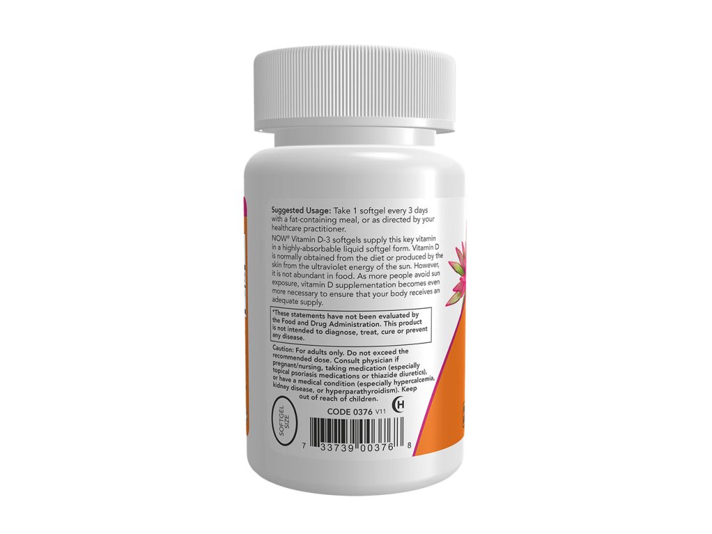 NOW® Vitamin D-3 softgely dodávají tento klíčový vitamin ve vysoce vstřebatelné tekuté softgelové formě. Vitamin D se obvykle získává ze stravy nebo se vytváří v kůži z ultrafialové energie slunečního záření. V potravinách však není hojně zastoupen. Vzhledem k tomu, že se stále více lidí vyhýbá pobytu na slunci, je doplňování vitaminu D ještě nezbytnější, aby se zajistil jeho dostatečný přísun do těla.