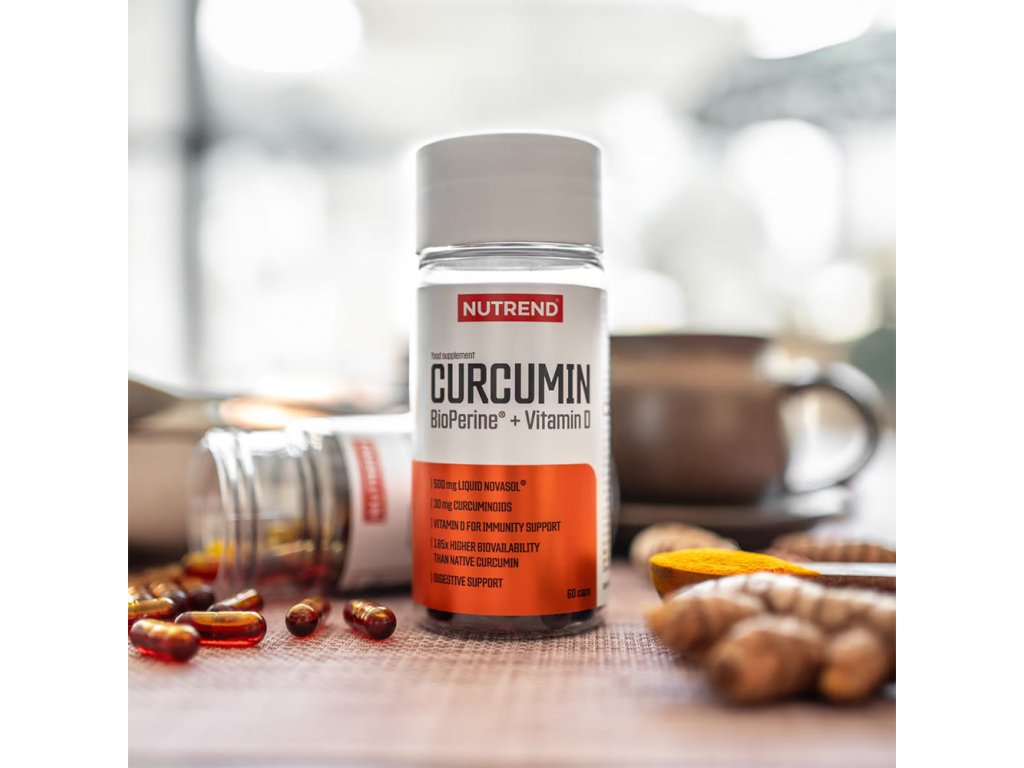 Produkt Kurkumin od společnosti NUTREND má antioxidační účinky, je zápalný, podporuje trávení a je ideálním produktem pro detoxikační plány. Díky vitaminu D je také účinnější funkce imunitního systému a pomáhá posilovat kosti a zuby. Obsahuje značkové složky, jako je extrakt Bioperine, který byl jako jediná složka patentován pro svou schopnost zvýšit biologickou likvidaci výživového materiálu.