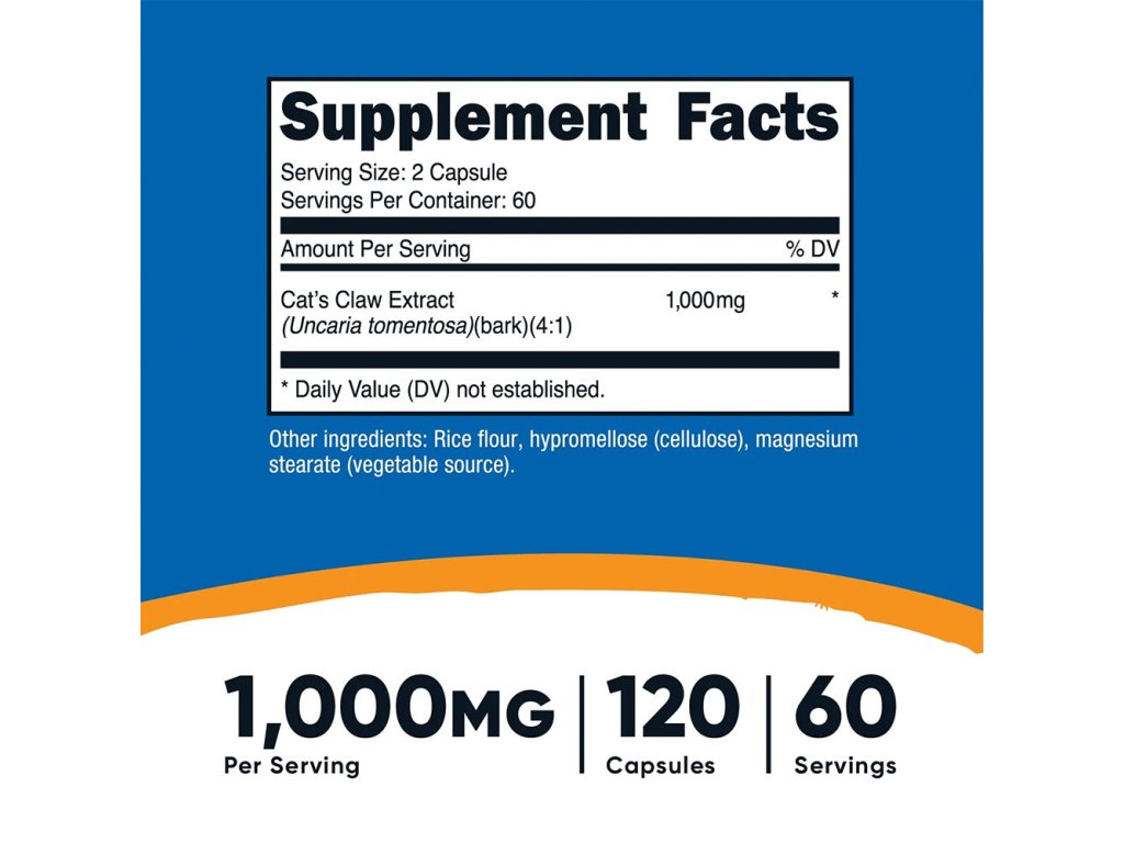 - 1000 mg extraktu z kočičího drápu (kůry) v jedné dávce (500 mg v jedné kapsli)