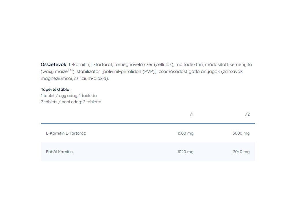 - 500 mg L-karnitin tartrátu v jedné tabletě.