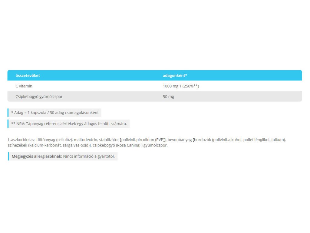 - Náš přípravek vitaminu C obsahuje 1000 mg vitaminu C v jedné dávce (1 tableta) doplněné o šípkový extrakt