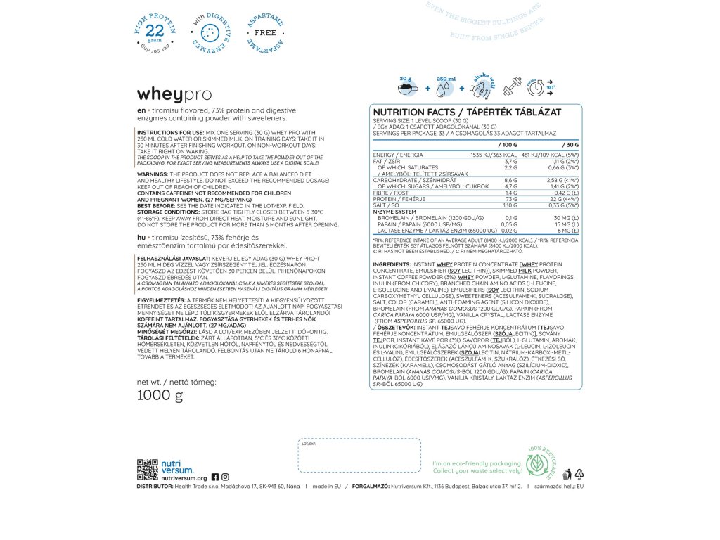 Nová, přepracovaná receptura Whey Pro je vyrobena z prvotřídního zdroje bílkovin syrovátkového bílkovinného koncentrátu, doplněného o komplex 3 trávicích enzymů, včetně trávicích enzymů bromelainu, papainu a laktázy!