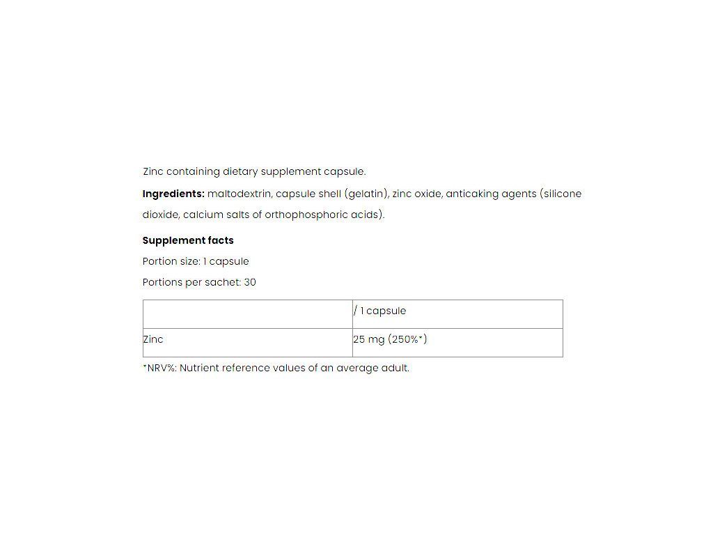 Náš zinkový produkt obsahuje 25 mg zinku v jedné denní dávce (1 kapsle)!