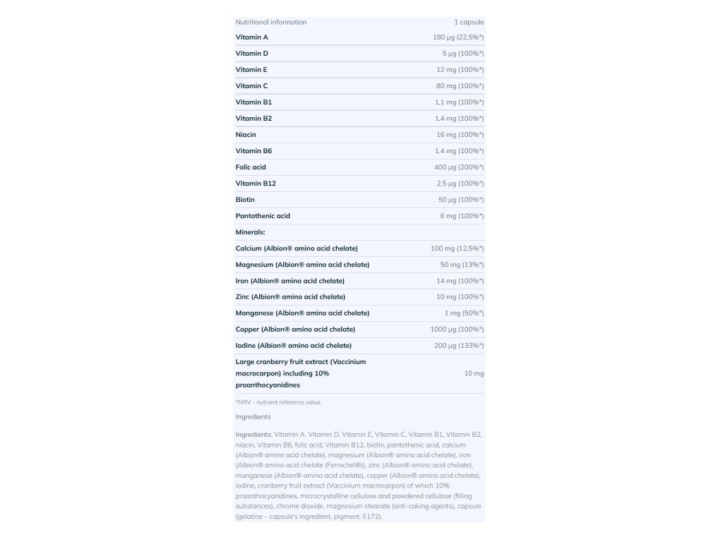 Vita-min plus® Mother je inovativní a komplexní složení vitamínů a vysoce vstřebatelných minerálních látek ve formě chelátů, které splňuje zvýšenou poptávku po nutričních mikroprvcích během těhotenství a kojení. Přípravek je navíc obohacen o extrakt z brusinek (Vaccinium macrocarpon Ait.) a kyselinu listovou, které přispívají ke správnému růstu tkání matky, a doporučuje se ve zvýšených dávkách ženám, které plánují otěhotnět nebo v průběhu těhotenství a kojení.