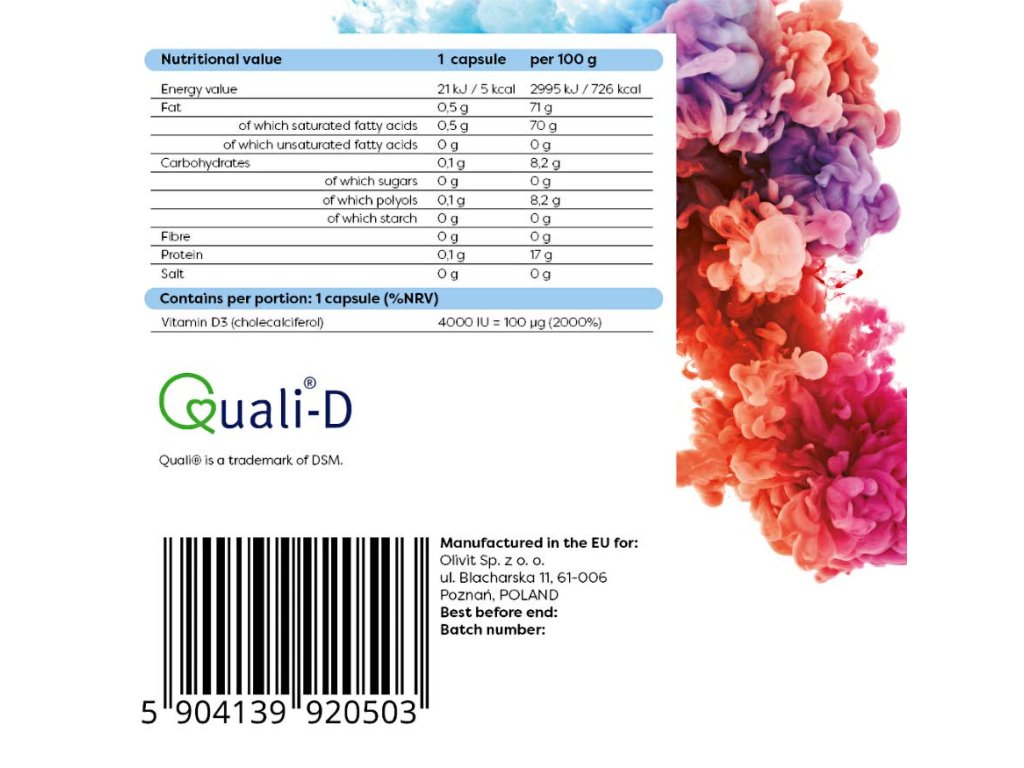 - Obsahuje Quali®-D, stabilní a biologicky dostupnou formu vitaminu D3 získávanou přirozeně z lanolinu.