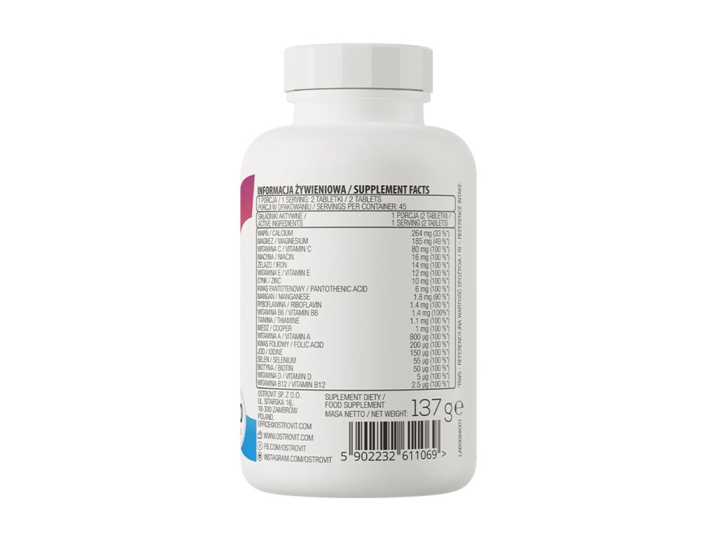 OstroVit 100% Vit&Min je komplexní doplněk stravy, který obsahuje až 20 účinných látek - vitaminů a minerálů. Jedná se o přípravek dostupný ve formě snadno polykatelných tablet, vytvořený pro lidi, kteří chtějí doplnit svou každodenní stravu o cenné složky.