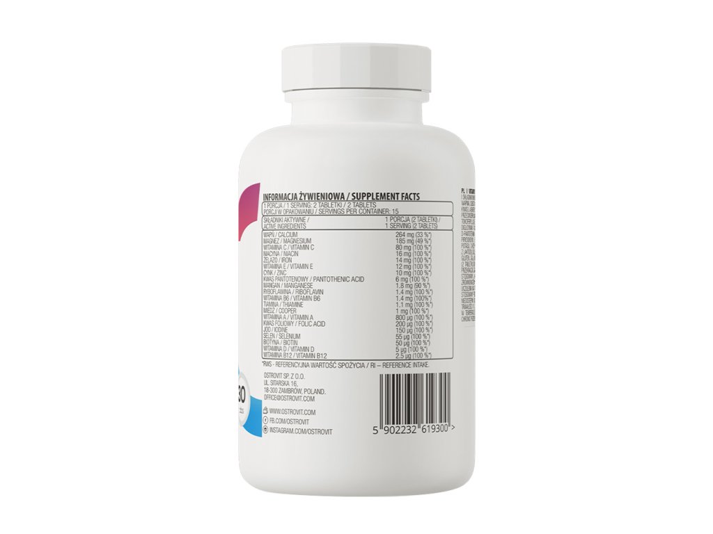 OstroVit 100% Vit&Min je komplexní doplněk stravy, který obsahuje až 20 účinných látek - vitaminů a minerálů. Jedná se o přípravek dostupný ve formě snadno polykatelných tablet, vytvořený pro lidi, kteří chtějí doplnit svou každodenní stravu o cenné složky.
