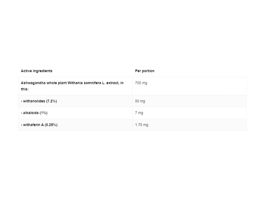 - Až 50 mg withanolidů a další standardizace pro alkaloidy a vitaferin A