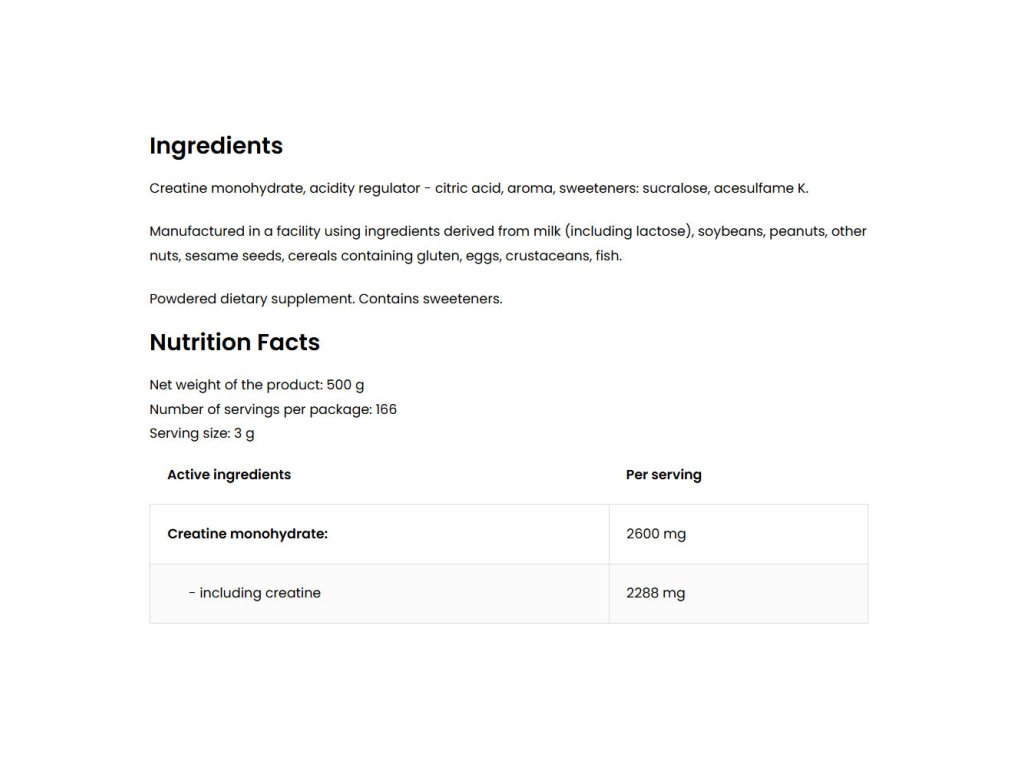 Vlastnosti složek obsažených v OstroVit Creatine Monohydrate: