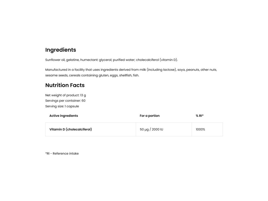 Vitamin D, známý také jako "sluneční vitamin", přispívá ke správnému vstřebávání / využití vápníku a fosforu a pomáhá udržovat správnou hladinu vápníku v krvi. Kromě toho tento vitamin pomáhá udržovat zdravé kosti, zuby a přispívá ke správnému fungování svalů a imunitního systému. Vitamin D se podílí na procesu dělení buněk. Nedostatek vitaminu D je velmi nebezpečný. Způsobují změny zakřivení u dětí a kojenců. U těhotných a kojících žen mohou být příčinou dekalcifikace a měknutí kostí, zatímco u starších osob zvýšené demineralizace, deformity a nadměrné pórovitosti a křehkosti skeletu.
