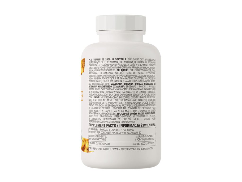 OstroVit Vitamin D3 2000 je vysoce kvalitní přípravek ve formě vysoce vstřebatelných softgelů. Přípravek se doporučuje jako každodenní doplněk stravy, a to zejména jako důležitý prvek hlavního nedostatku biologicky nezbytného pro organismus vitaminu D3 ve formě cholekalciferolu.