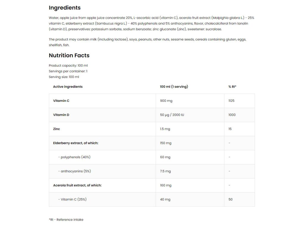 OstroVit Immunity Shot je unikátní kompozice složek, které jsou známé pro podporu imunity. Vitamín C a D, zinek, extrakt z černého bezu bohatý na polyfenoly a antokyany a extrakt z aceroly bohatý na vitamín C mají komplexní vliv na imunitní systémOstroVit Immunity Shot je ideální volbou, pokud