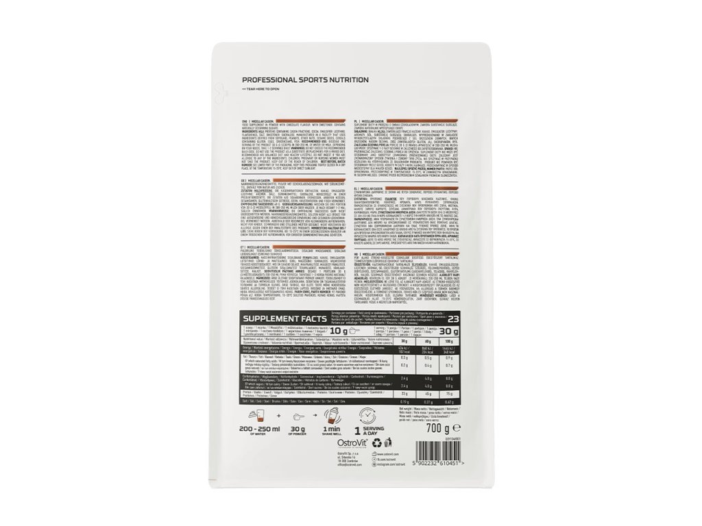 OstroVit Micellar Casein je doplněk stravy, který je zdrojem micelárního kaseinu nejvyšší kvality. Jedná se o nejúčinnější formu kaseinu. Vyznačuje se velmi pomalou dobou vstřebávání, díky čemuž zajišťuje několikahodinový přísun stavebních látek do svalové tkáně. Kasein prochází v žaludku procesem srážení, který zpomaluje jeho trávení a prodlužuje dobu vstřebávání.