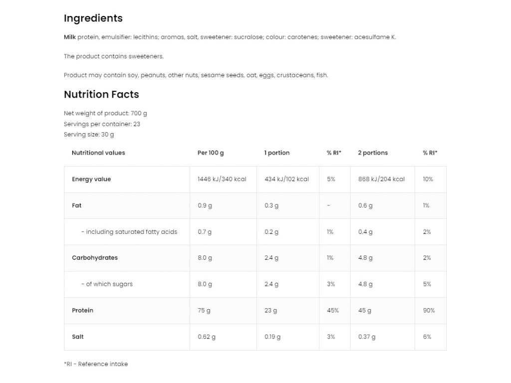 - Jedna porce představuje 30 g výrobku