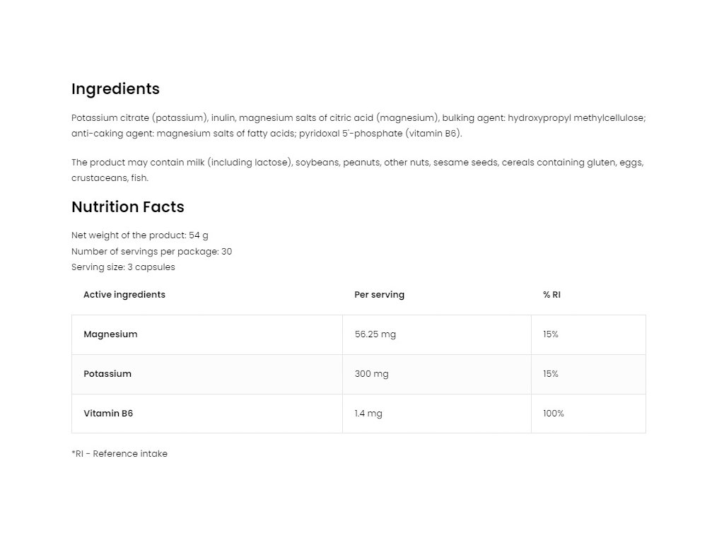 - Zdroj cenných mikroživin - jedna porce doplňku stravy dodává tělu 56,25 mg hořčíku, 300 mg draslíku a 1,4 mg vitaminu B6