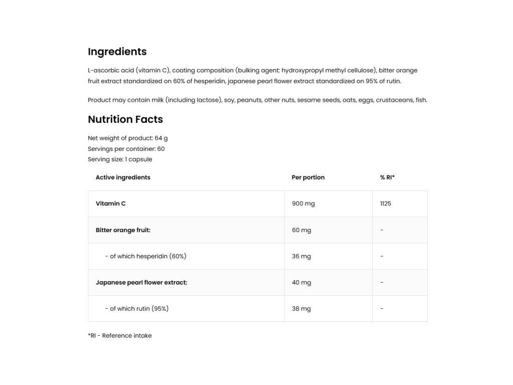 - VÝTAH Z KVĚTŮ JAPONSKÉ PERLY A VÝTAH Z OVOCE BITTER ORANGE - vykazují antioxidační účinek. Utěsňují a zpružňují cévy. Prodloužený účinek vitaminu C.