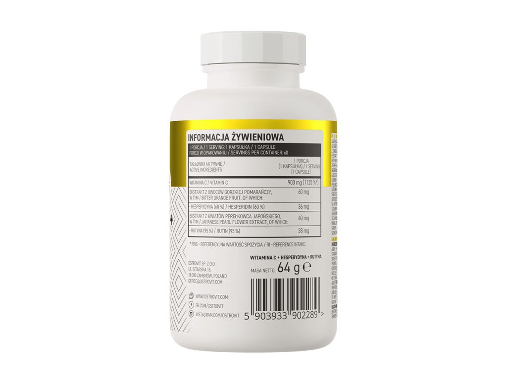 Profylaktické užívání kyseliny L-askorbové, běžně známé jako vitamin C, může znatelně zkrátit dobu trvání infekce. Navíc jeho pravidelný příjem podporuje fungování mnoha procesů v organismu. Vitamin C hraje klíčovou roli při tvorbě kolagenu, zabezpečuje zuby proti zubnímu kazu a odstraňuje toxinyVlastnosti složek obsažených v přípravku OstroVit Vitamin C + Hesperidin + Rutin