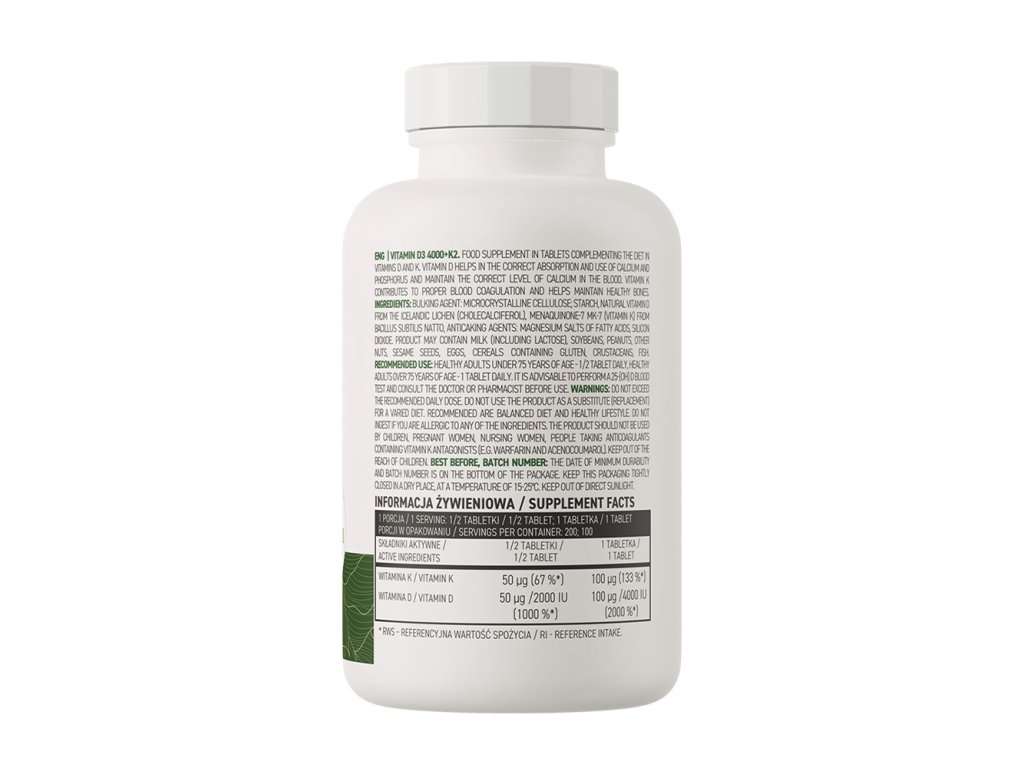 OstroVit Vitamin D3 4000 IU + K2 je vysoce kvalitní doplněk stravy, který je zdrojem vitaminu D3 a vitaminu K2 v nejlépe vstřebatelné formě menachinonu-7-MK-7. Jedná se o veganský přípravek dostupný ve formě snadno polykatelných tablet, který byl vytvořen pro lidi, kteří chtějí doplnit svůj denní jídelníček o cenné mikroživiny.
