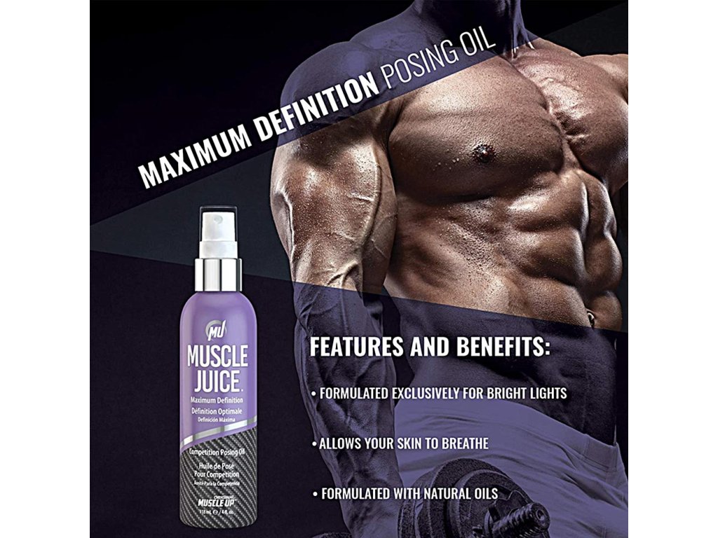 Muscle Juice®, formulovaný výhradně pro horká světla, ukáže vaši skutečnou svalovou definici, aniž by vytvářel slepá místa jako dětský olej.