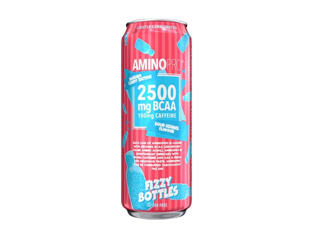 fizzy bottler (kyselé ovoce): sycená voda (filtrovaná), větvené aminokyseliny BCAA: L-leucin, L-izoleucin, L-valin, regulátory kyselosti (kyselina jablečná, citráty sodné), ochucovadla, sladidla (aspartam*, acesulfam-K), kofein (bezvodý), barviva (patentní modř V). * Obsahuje zdroj fenylalaninu.