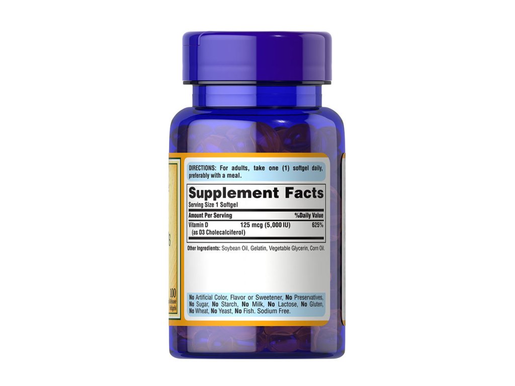 PURITAN'S PRIDE Vitamin D3 5000 IU 100 kapslí