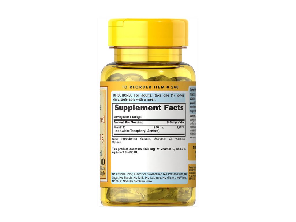 Puritan's Pride Vitamin E 400 IU z přírodního zdroje 100 Softgels