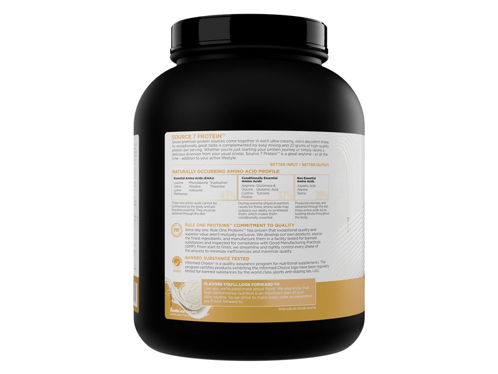 Díky vícezdrojové proteinové směsi poskytuje Source7 přirozeně se vyskytující aminokyseliny, včetně esenciálních aminokyselin (EAA).