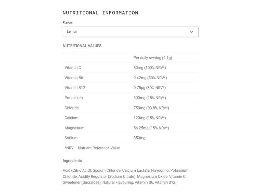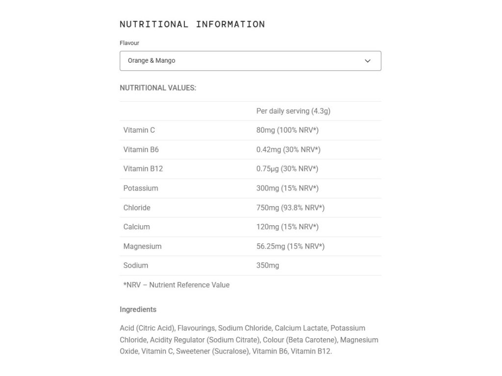 - 5 klíčových elektrolytů - každá dávka 4,1 g obsahuje vápník, hořčík, chlorid, sodík a draslík
