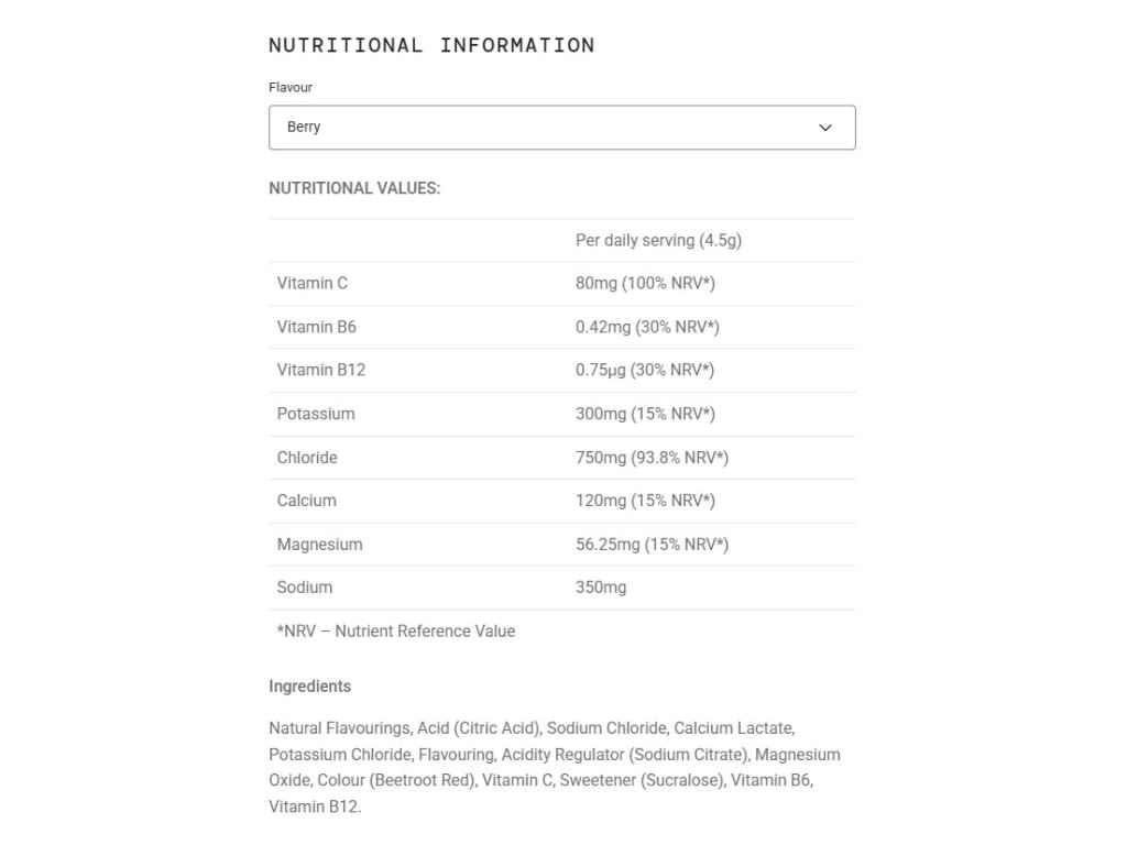 Obsahuje pět klíčových elektrolytů a tři základní vitaminy smíchané do vědecky podporované dávky pro optimální hydrataci. HYDRO+ je balen v praktických jednorázových sáčcích, které se snadno vejdou do tašky nebo kapsy a jsou ideálním elektrolytovým nápojem pro ty, kteří vedou aktivní životní styl a jsou neustále na cestách.
