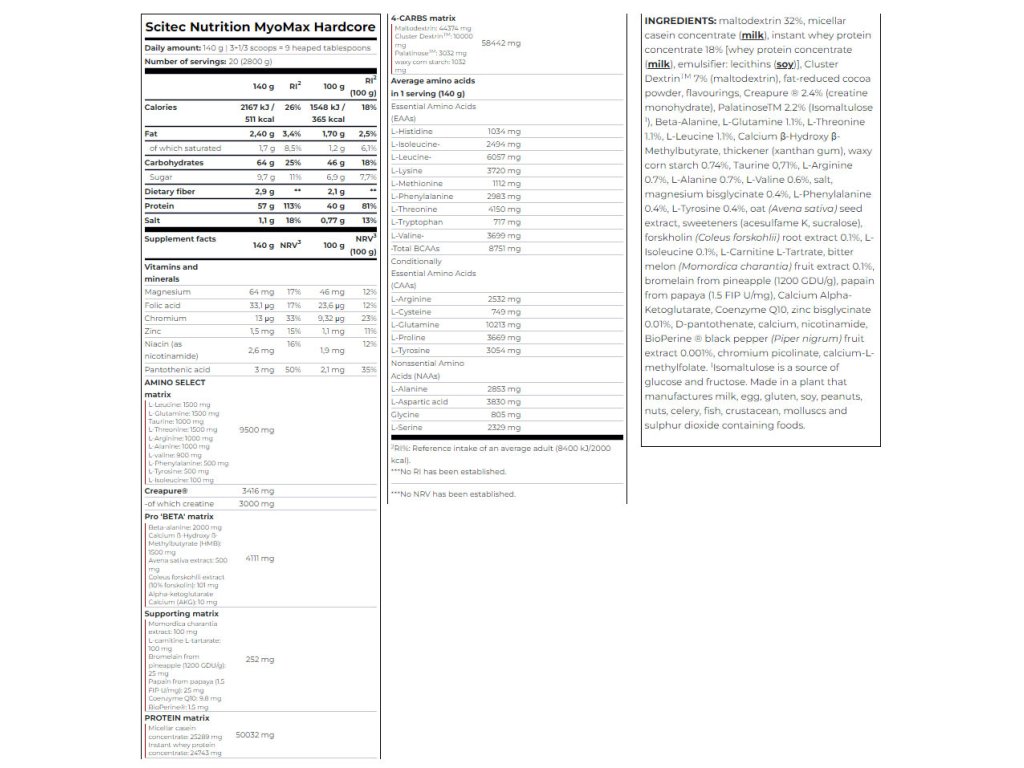 MyoMax Hardcore je zpět a jde ve stopách svého předchůdce s minimálními změnami. Koncept gaineru na zvýšení hmotnosti zůstal zachován, ale vrátil se s obnoveným složením, aby byl produkt ještě vhodnější pro vaše potřeby