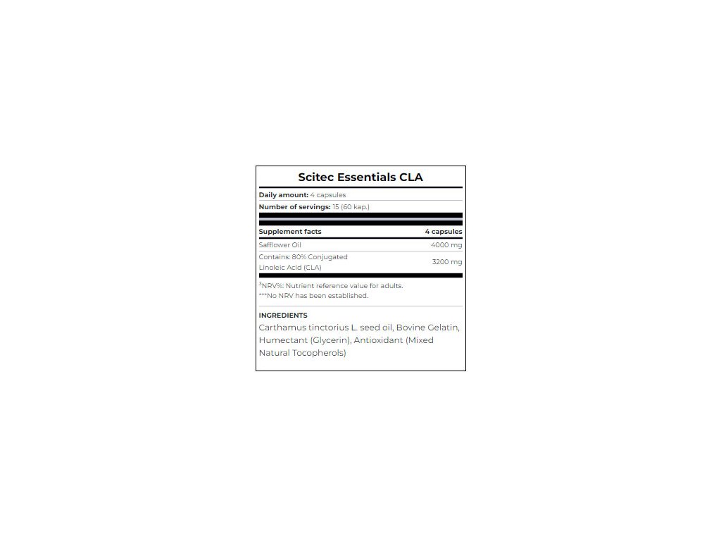 Každá dávka obsahuje 4000 mg oleje ze sazečky (Carthamus tinctorius L.) s obsahem 80 % konjugované kyseliny linolové, známé také jako CLA.Upozornění