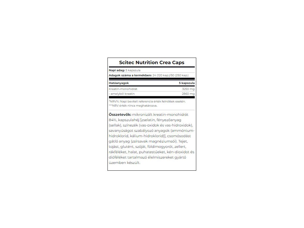 Kreatin je organická kyselina s vysokým obsahem dusíku, kterou si naše tělo vyrábí také pomocí tří aminokyselin, L-argininu, L-glycinu a S-adenosylmethioninu. Crea Caps obsahuje kreatin ve formě kreatin monohydrátu.Upozornění