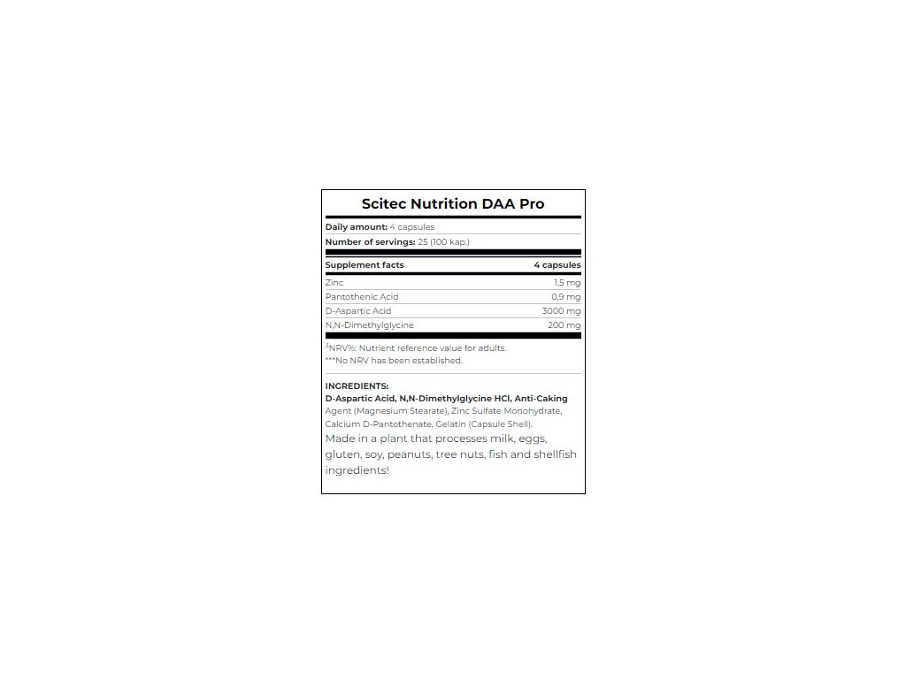 DAA PRO obsahuje oblíbenou kyselinu D-asparagovou (DAA) s N,N-dimethylglycinem, zinkem a kyselinou pantotenovou. Zinek se používá, protože pomáhá udržovat normální hladinu testosteronu v krvi, přispívá k plodnosti a reprodukci a má význam pro normální syntézu bílkovin!