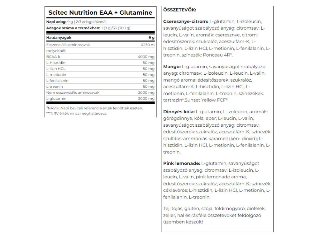 Aminokyseliny s rozvětveným řetězcem (BCAA) patří mezi esenciální a tvoří přibližně 35 % esenciálních aminů ve svalových bílkovinách. Náš produkt obsahuje matrix BCAA s vysokou dávkou (L-leucin, L-isoleucin, L-valin). Navíc vám naše receptura poskytuje velkou dávku 2 g L-glutaminu v jedné dávce, což není esenciální aminokyselina, ale je to nejhojněji zastoupená aminokyselina v lidském těle a podmíněně esenciální, což znamená, že když je tělo fyzicky zatíženo, může být potřeba jejího příjmu v potravě
