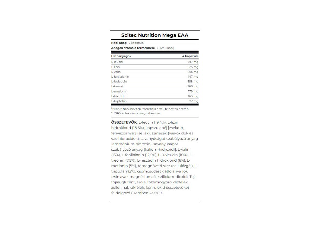 Mega EAA obsahuje všechny esenciální aminokyseliny v poměru doporučeném Světovou zdravotnickou organizací WHO. I když je samozřejmě správný příjem esenciálních aminokyselin základem správné výživy, produkt jako Mega EAA může výrazně podpořit vaše cíle tím, že vám poskytne všechny esenciální aminokyseliny ve správný čas a ve správném poměru!