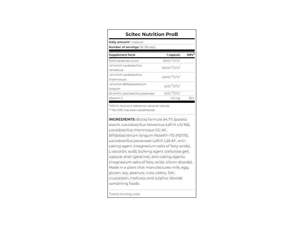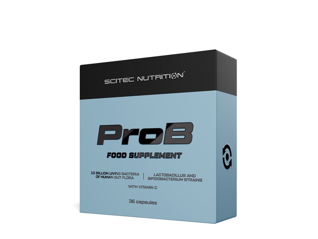 Produkt ProB společnosti Scitec Nutrition obsahuje čtyři kmeny živých bakterií, které se vyskytují v lidském trávicím traktu, a také 40 mg vitaminu C.