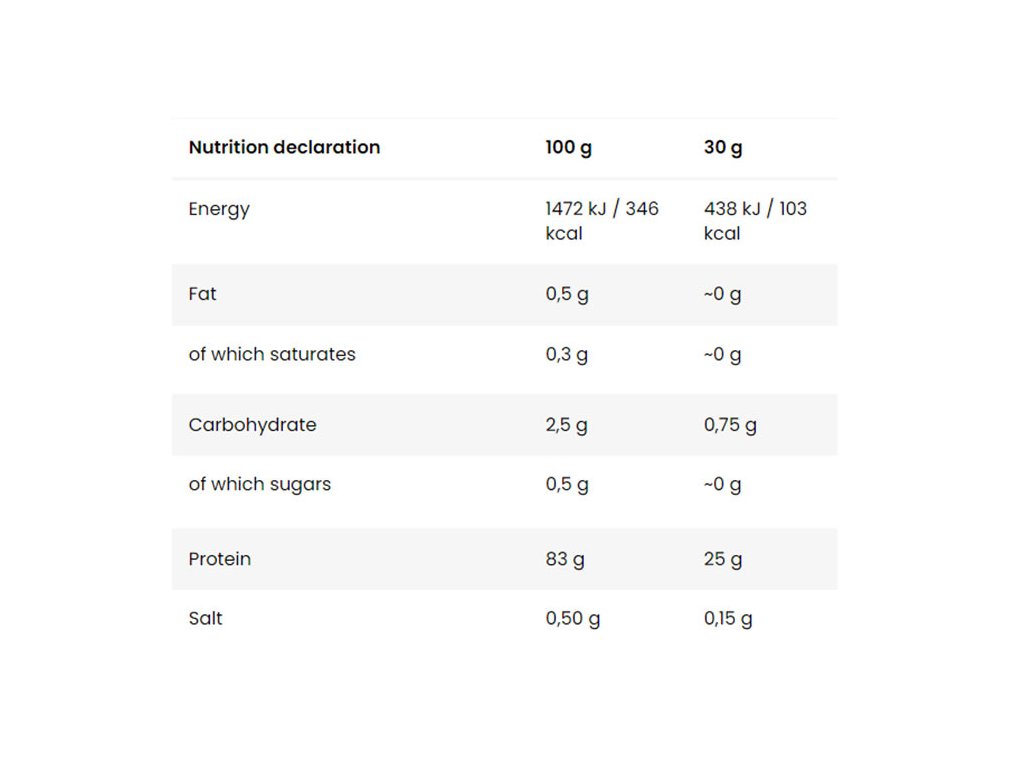 Nejčistší receptura obsahující syrovátkový proteinový izolát v prášku pro přípravu vysokoproteinového nápoje. Určeno pro intenzivní sportovce, kteří usilují o růst a udržení svalové hmoty. Kromě toho podporuje tělo při udržování silných a zdravých kostí