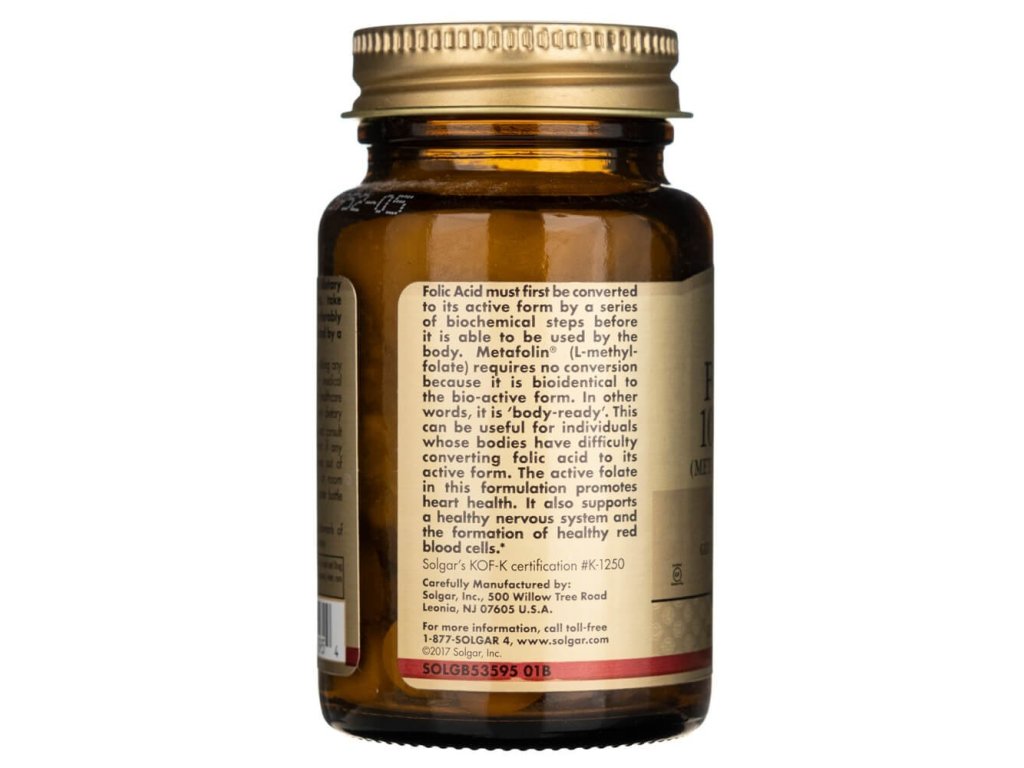 Kyselina listová musí být nejprve převedena na aktivní formu v řadě biochemických kroků, než ji tělo může využít. Metafolin ® (L-methylfolát) nevyžaduje žádnou přeměnu, protože je bioidentický s bioaktivní formou. Jinými slovy, je připraven pro tělo. To může být užitečné pro jedince, jejichž tělo má potíže s přeměnou kyseliny listové na její aktivní formu. Aktivní folát v tomto přípravku podporuje zdraví srdce. Podporuje také zdravý nervový systém a tvorbu zdravých červených krvinek.