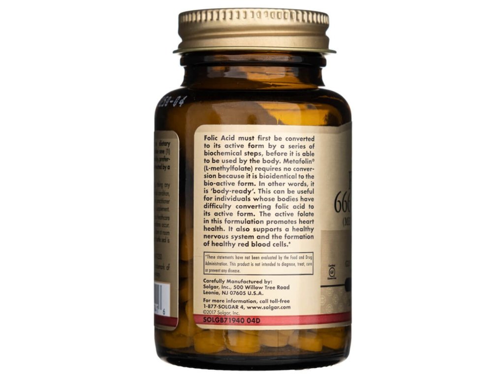 Kyselina listová musí být nejprve přeměněna na aktivní formu pomocí řady biochemických kroků, než ji tělo může využít. Metafolin (L-methylfolát) žádnou přeměnu nevyžaduje, protože je bioidentický s bioaktivní formou. Jinými slovy, je "připraven pro tělo". To může být užitečné pro jedince, jejichž tělo má potíže s přeměnou kyseliny listové na její aktivní formu. Aktivní folát v tomto přípravku podporuje zdraví srdce. Podporuje také zdravý nervový systém a tvorbu zdravých červených krvinek.