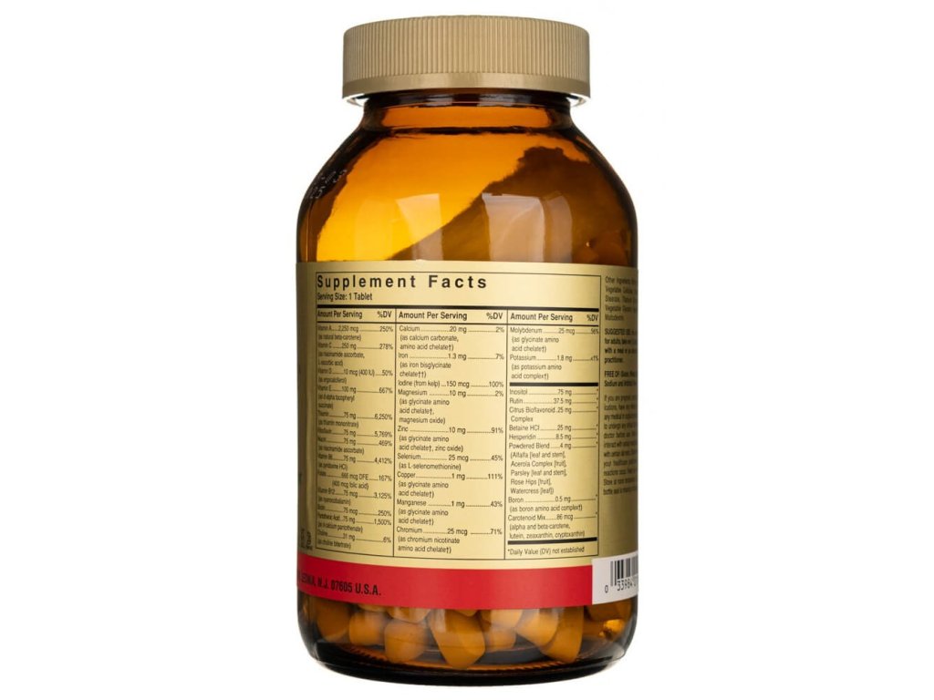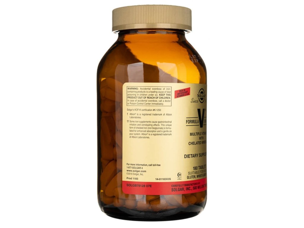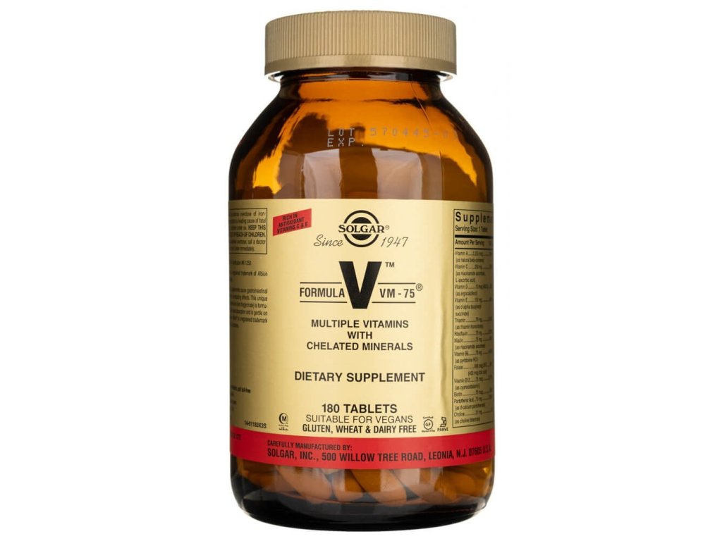 Formula V VM-75 od Solgaru je doplněk stravy obsahující chelátové vitamíny a minerály.