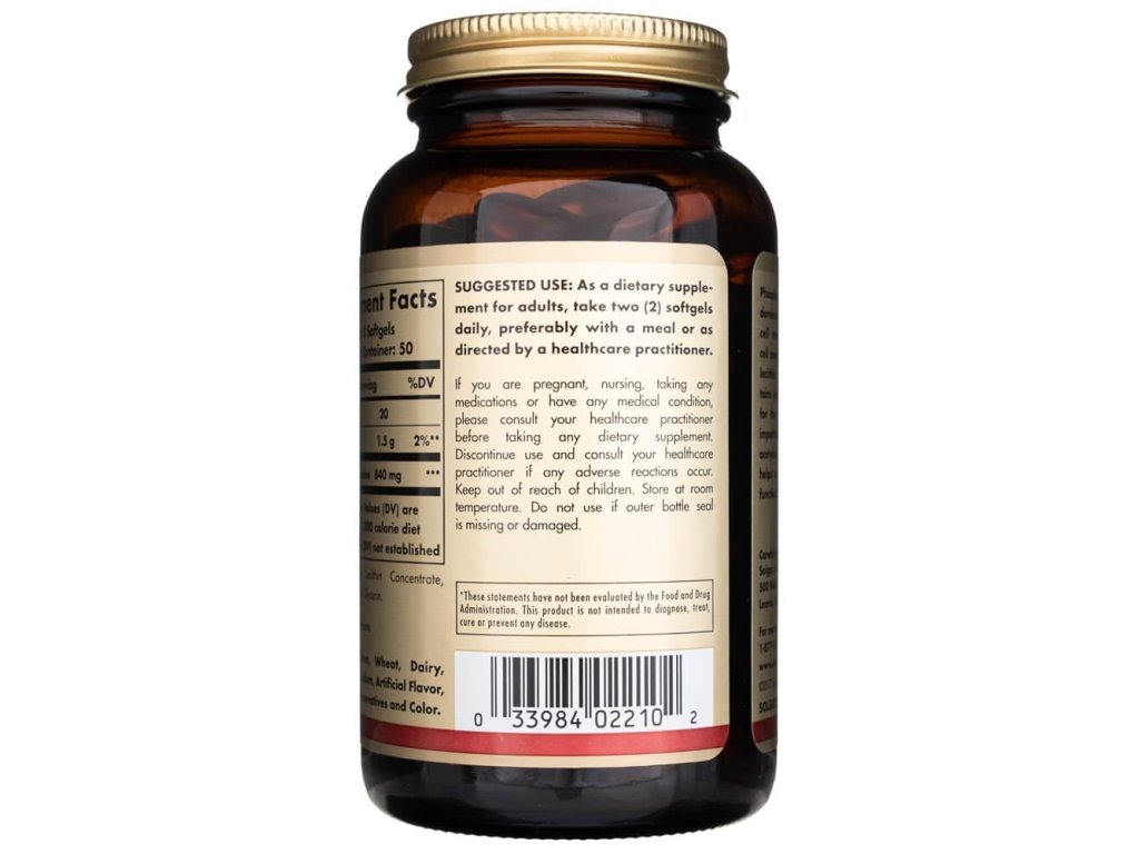 Solgar® Phosphatidylcholine je doplněk stravy ve formě měkkých gelových kapslí obsahující fosfatidylcholin – klíčovou složku buněčných membrán, včetně těch v mozku. Tento fosfolipid je odvozen z lecitinu a přirozeně obsahuje cholin, který je nezbytný pro tvorbu neurotransmiteru acetylcholinu, důležitého pro paměť, koncentraci a celkové kognitivní funkce. 🧬