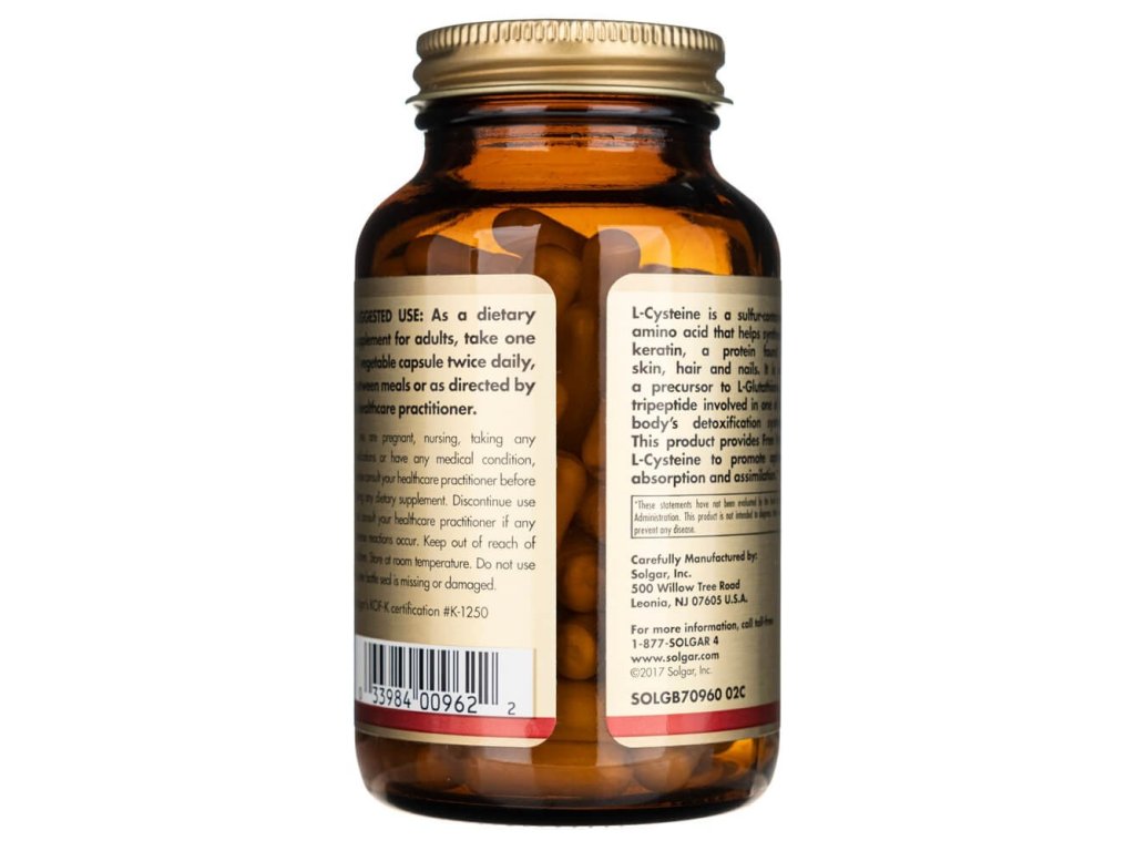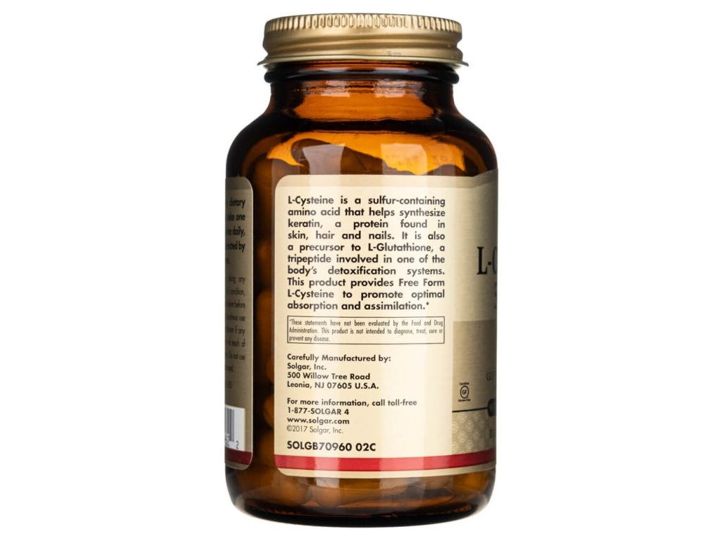 L-cystein je aminokyselina obsahující síru, která pomáhá syntetizovat keratin, - bílkovinu, která se nachází v kůži, vlasech a nehtech. Je také prekurzorem L-Glutathionu,, tripeptidu, který se podílí na jednom z detoxikačních systémů těla. Tento produkt poskytuje volnou formu L-cysteinu, která podporuje optimální vstřebávání a asimilaci.