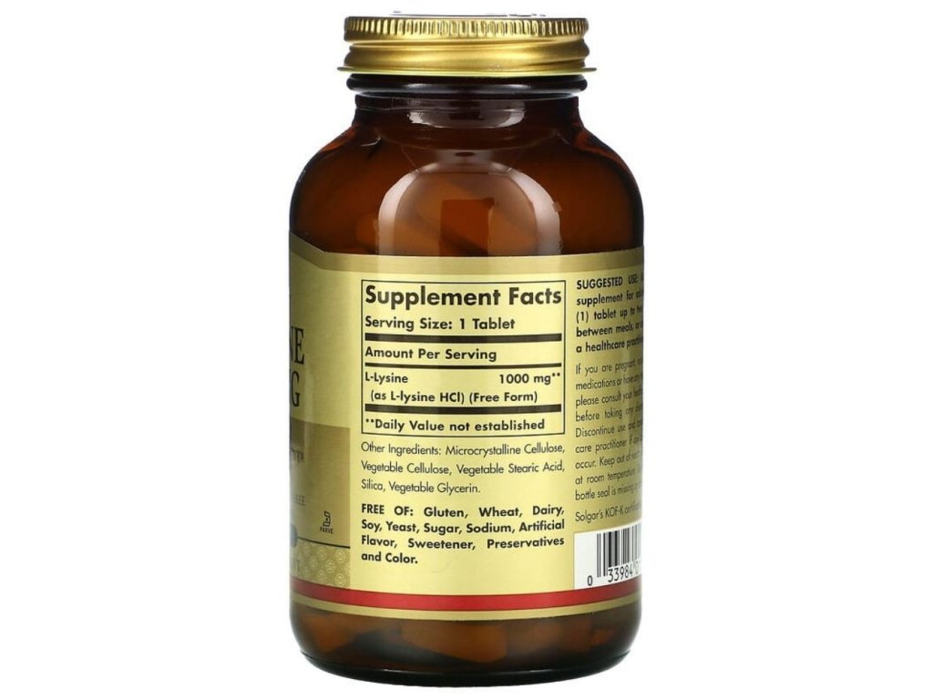 Solgar L-Lysin je doplněk stravy s obsahem L-lysinu ve volné formě (L-Lysine HCl). Tato esenciální aminokyselina je nezbytná pro tvorbu bílkovin, kolagenu a přispívá ke zdraví pokožky, šlach i imunitního systému. 💪