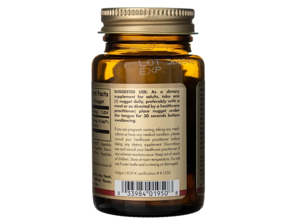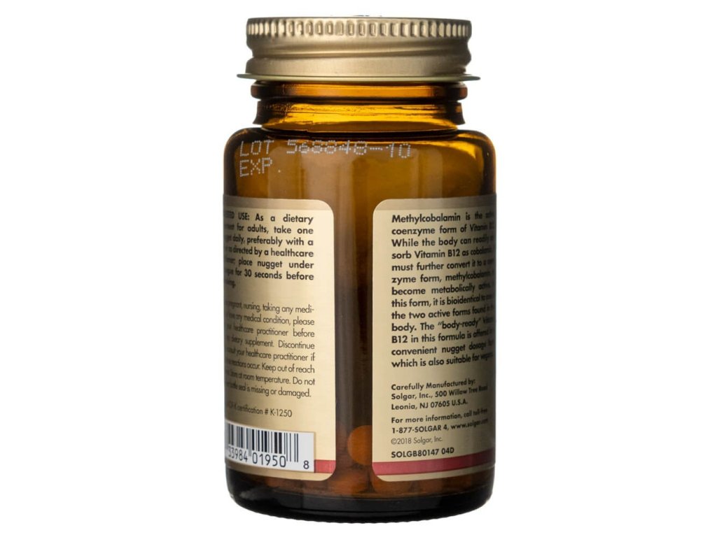 Solgar ® Metylkobalaminové nugety obsahují aktivní formu vitaminu B12 připravenou pro tělo ,. Pracovníci na směny , vysokoškoláci , matky a starší lidé mohou tento doplněk užívat k podpoře energetického metabolismu. Vegani se radují: nyní můžete svou dávku vitaminu B12 získat z nuget methylkobalaminu namísto živočišných produktů.