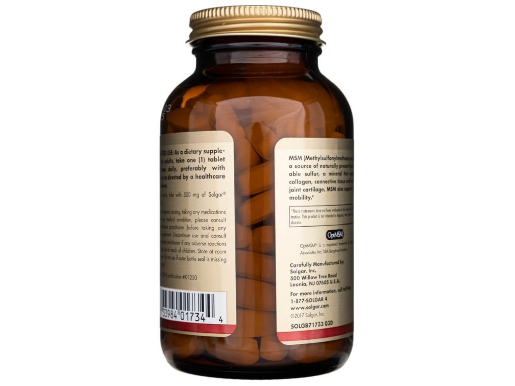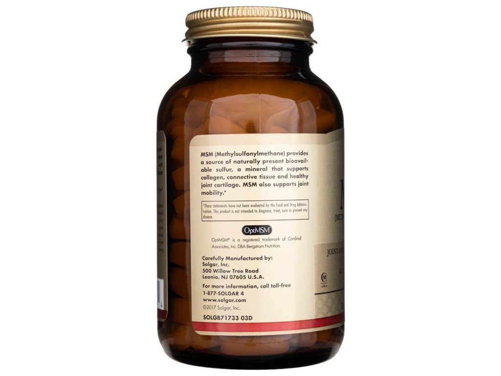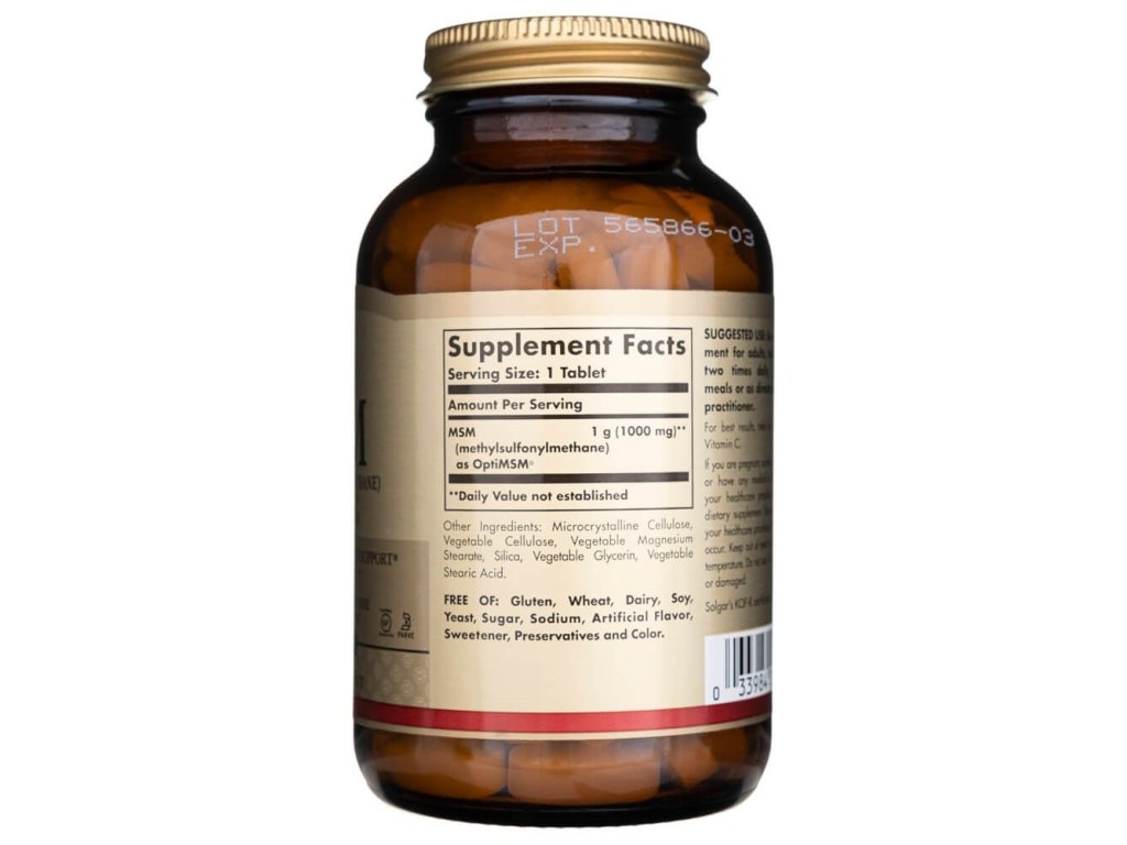 MSM (Methylsulfonylmethan) je zdrojem přirozeně přítomné biologicky dostupné síry,, minerálu, který podporuje tvorbu kolagenu, a zdravé kloubní chrupavky. MSM rovněž podporuje pohyblivost kloubů. Tento přípravek obsahuje 1000 mg OptiMSM®, který podporuje zdravé stárnutí pokožky, pomáhá při výskytu jemných linek a vrásek kolem očí, podporuje lesk vlasů, a podporuje zdravé nehty.