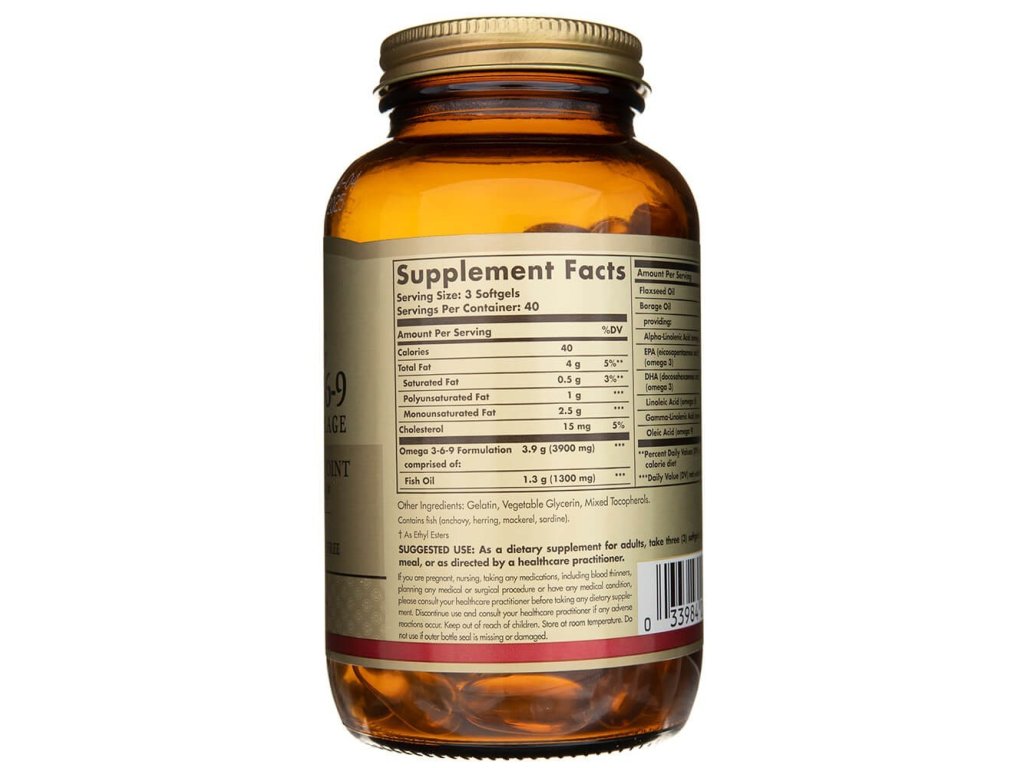Tento přípravek obsahuje směs tří prvotřídních olejů - rybího, lněného a brutnákového. Omega 3-6-9, přispívá esenciálními mastnými kyselinami nezbytnými pro optimální zdraví a pohodu. Omega 3-6-9 obsahuje také omega-3 mastné kyseliny EPA a DHA, které podporují zdraví a funkci řady orgánů a systémů včetně srdce, kloubů a kůže. K odstranění rtuti se používá molekulární destilace.